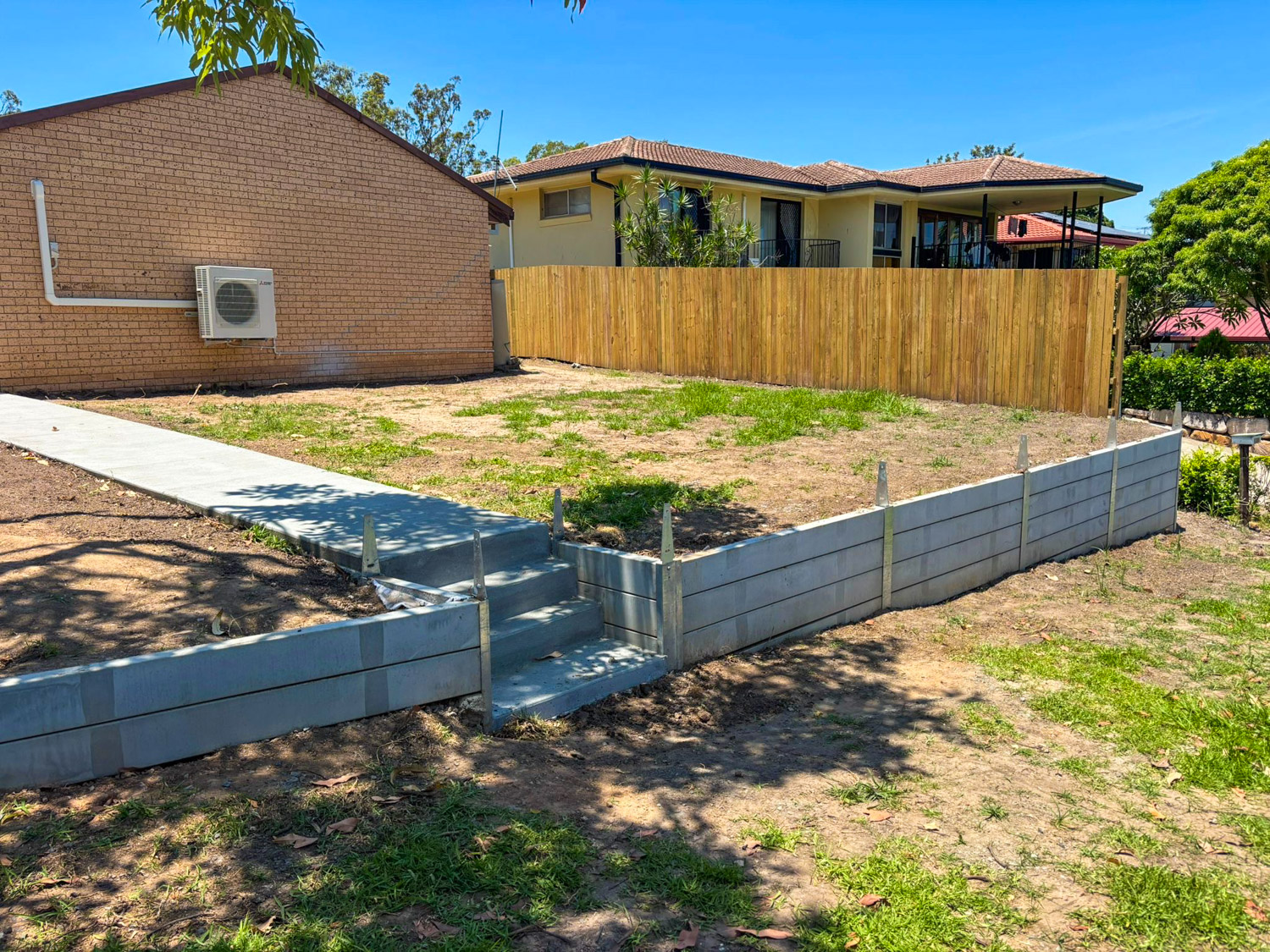 Our client reached out to M.O.S. Wall Construction to see if we could help with a full overhaul of their yard. They needed design and construction of their retaining walls, fencing, concreting, and driveways across the entire site, and wanted to go with one single company rather their trying to site manage five different contractors. We worked closely with the client to ensure that their vision was supported in the final design.