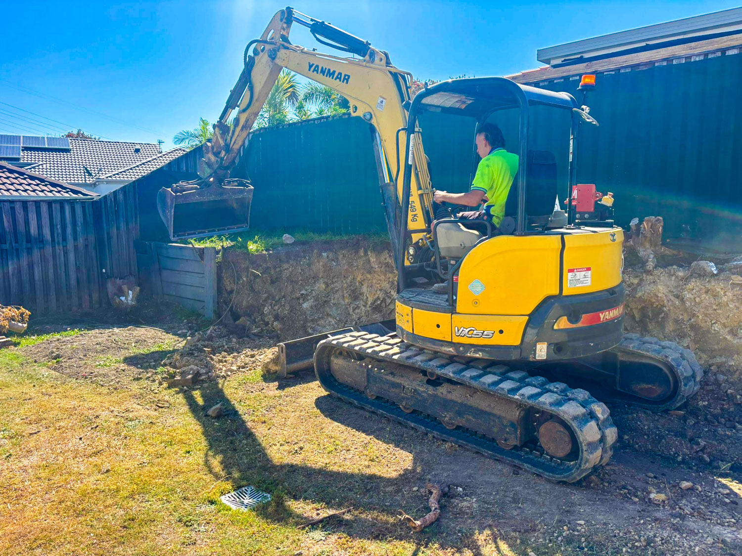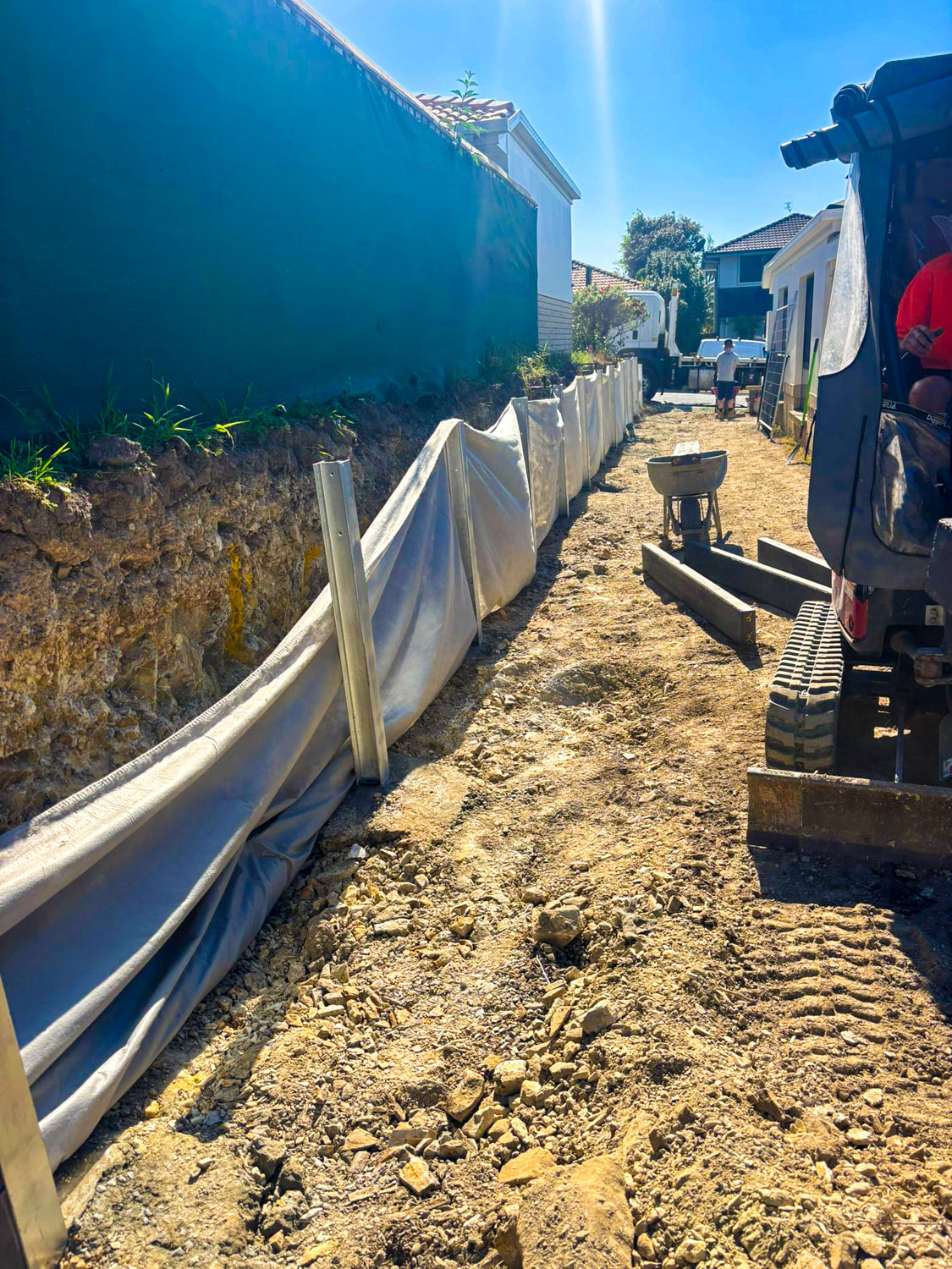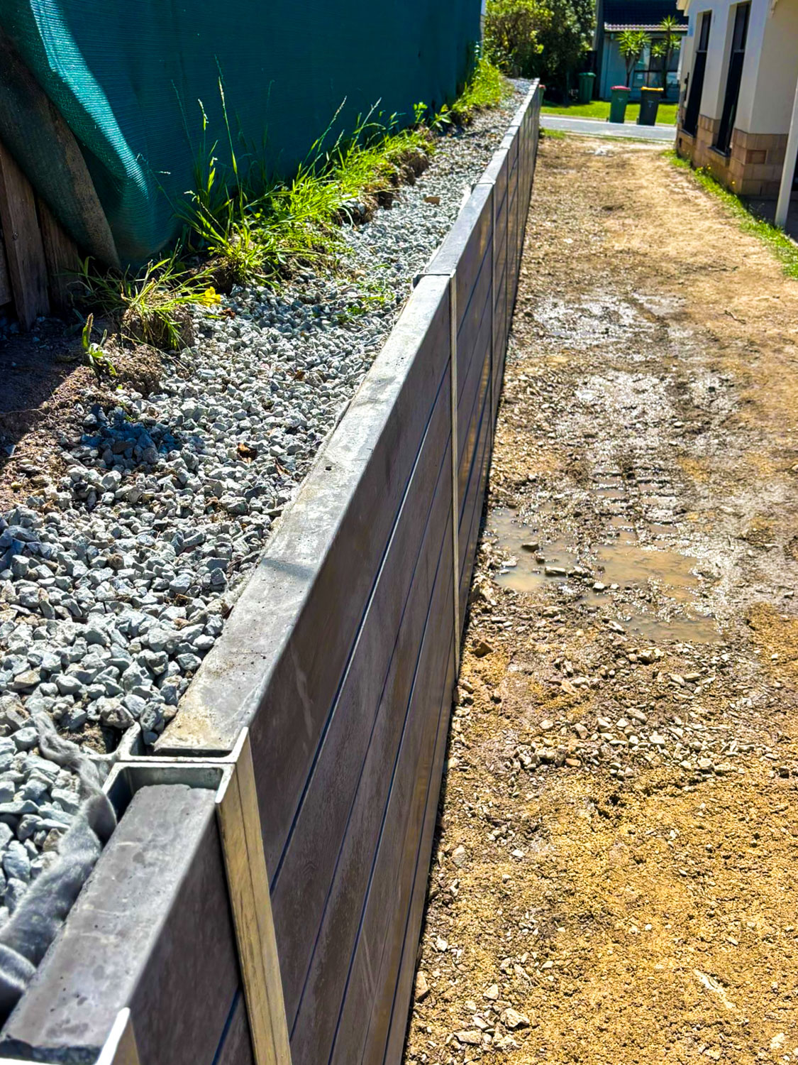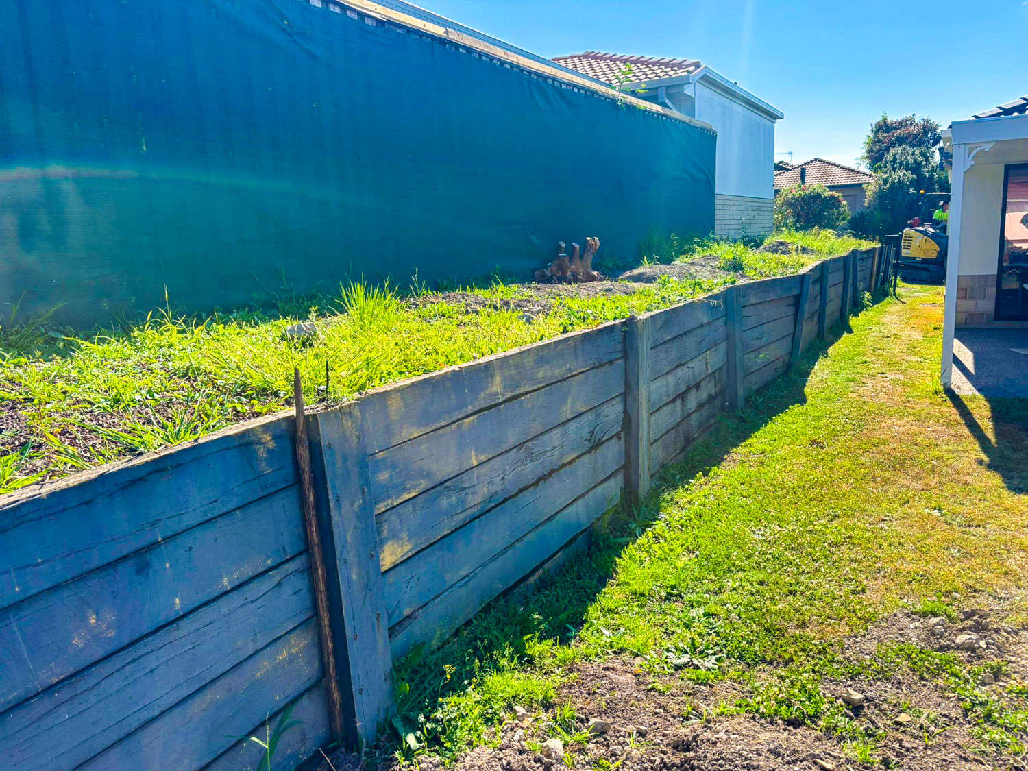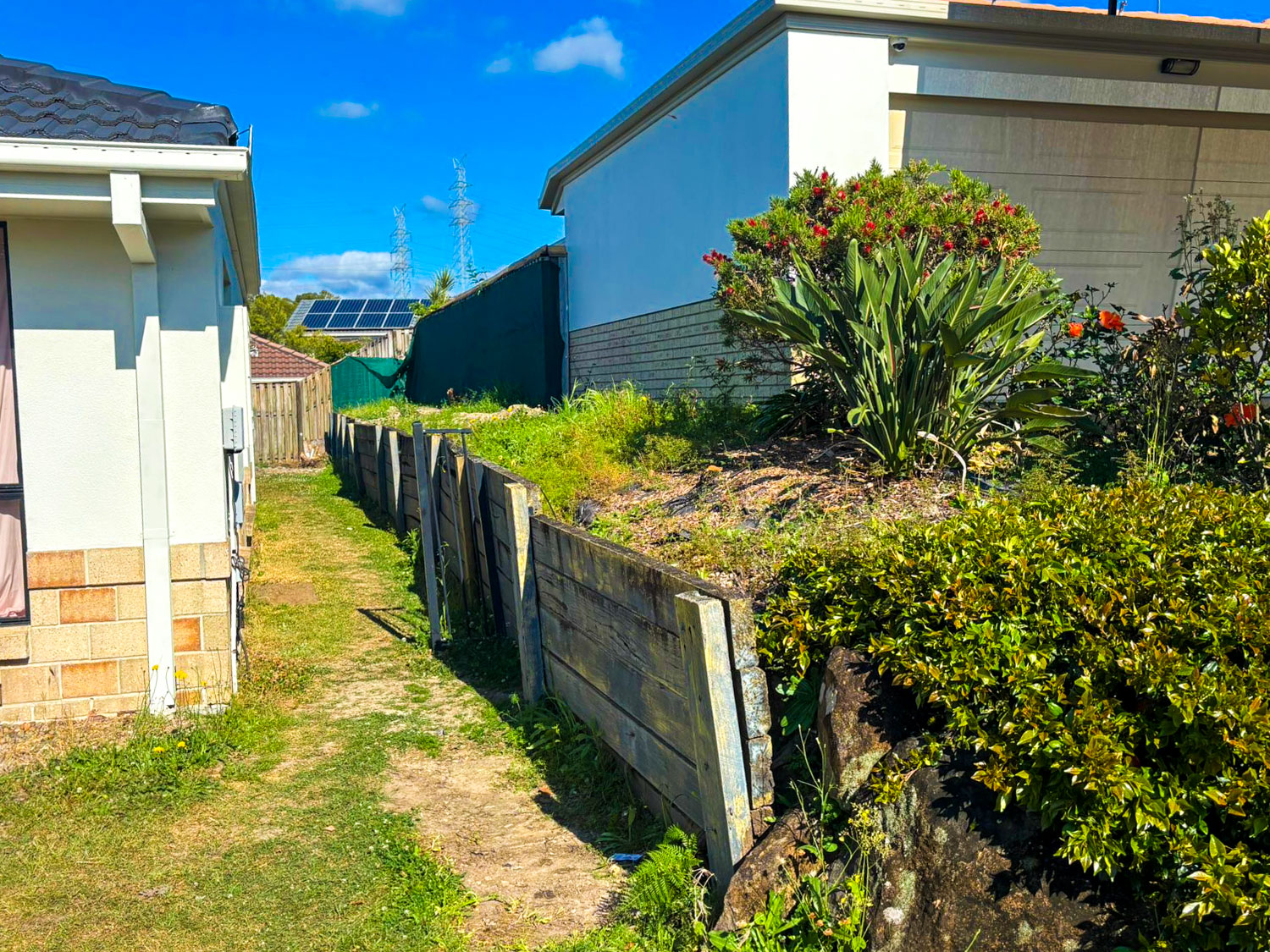 Our client wanted to have a more discrete home for their caravan, but with an existing wooden sleeper retaining wall only 1400mm from the side of their house they were unable to fit it anywhere but the front yard.