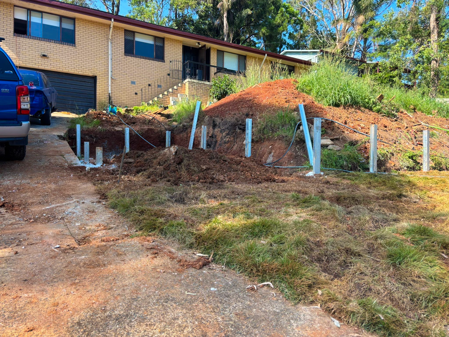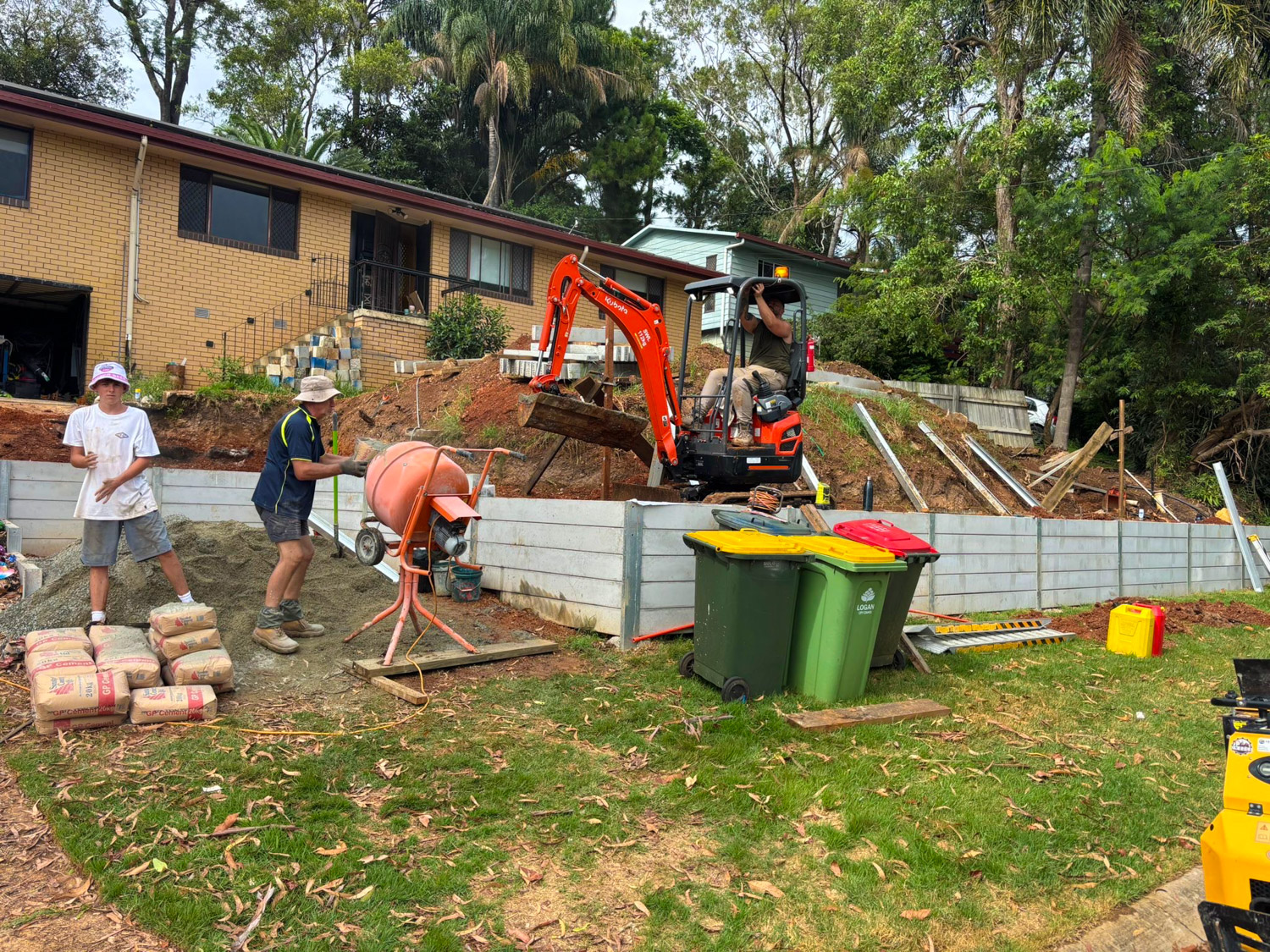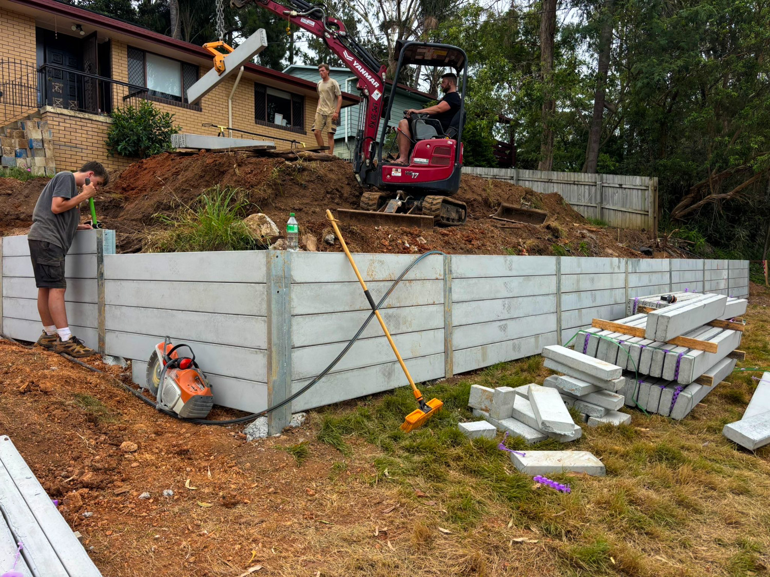 For this job, six truck loads of dirt was removed, and the two tiers were then levelled before the concrete sleeper wall was installed. As a final touch, a Colorbond fence was put on top of the second tier of retaining wall to add some much-needed privacy. The client was thrilled with the finished result.